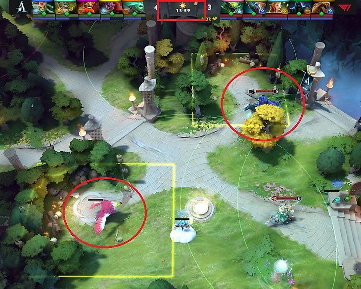 2. Покупка первых артов = взрыв темпа по всей карте. Все линии TNC переходят в атаку, а герои команды постепенно обволакивают половину противника, собирая все больше фарма: