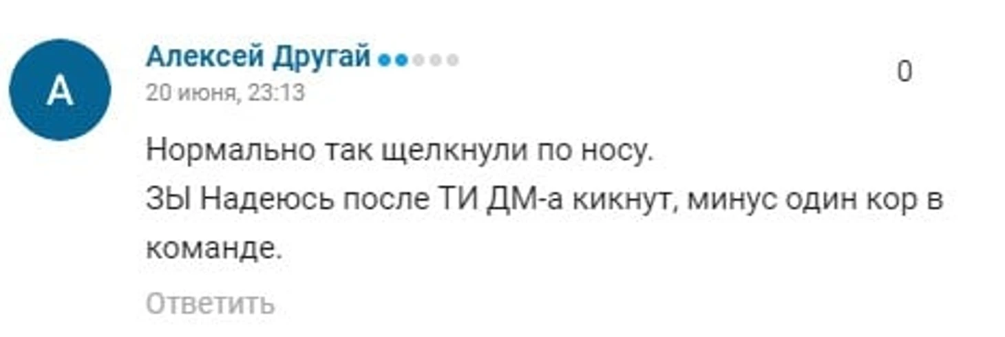 «Люди некоторые не воспринимают критику. Из-за этого он злится, подгорает. Он позволяет себе какие-то высказывания, которые нельзя делать в команде. И из-за этого иногда я могу перегибать палку с ним. Он ставит себя выше целей команды».