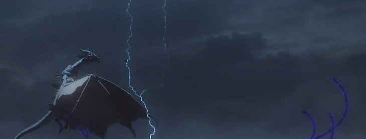 Тут же появляется и второй странный кадр – красного дракона хватают какие-то фиолетовые щупальца во время бури: