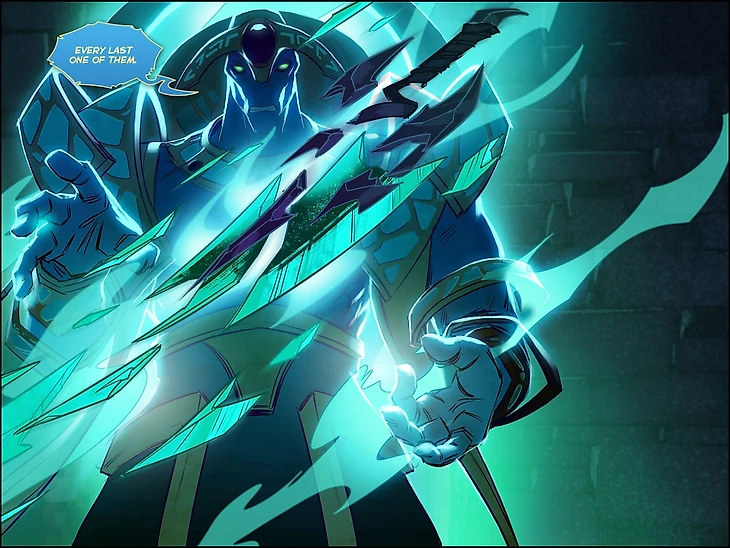 У Виверны есть прямая связь со Слайраком, который стал второй половиной ДК. Эти драконы принадлежат к одной расе – Эльдвурм. Более того, Аурот (имя Виверны) – самый древний представитель этой расы, о чем говорят Спектра и Марс. И да, конечно же, она знала Слайрака, о чем прямо говорит Дэвиону при встрече. Плюс в адрес Виверны интересная фраза есть у Питлорда, потенциального союзника ТБ (про это чуть позже): «Мы накроем их бурей из льда и пламени!», что намекает на их союзную связь. Сам же ТБ при встрече с драконом в одной команде говорит стандартную фразу: «Я всегда рад дракону на своей стороне». Настоящий Гвин от мира Доты!