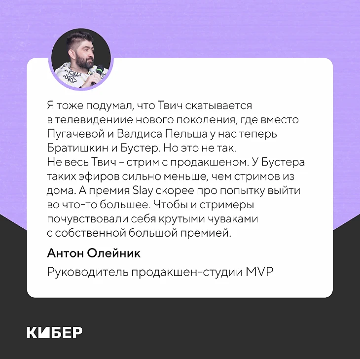 – Мне кажется, тут главное – баланс, когда стримеров уравновешивает профессиональный ведущий. Но желательно такой, которого любят на Твиче. Если же полностью отдавать церемонию профессионалу со стороны, далеко не факт, что это зайдет аудитории.