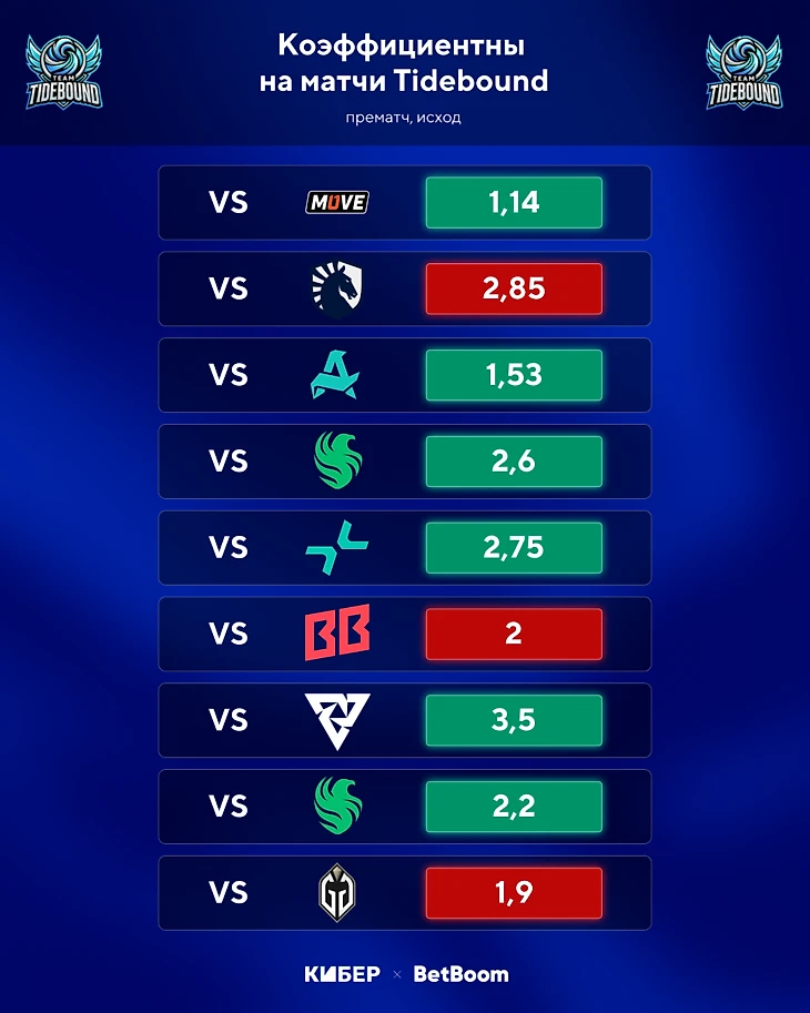 В итоге команда добралась до третьей строчки, несмотря на прогнозы. Если бы вы ставили на победу Tidebound в каждом матче одинаковую сумму, то увеличили бы свой банк на 52%. Надеемся, пятерка еще порадует нас дерзкими результатами в сезоне 2025.