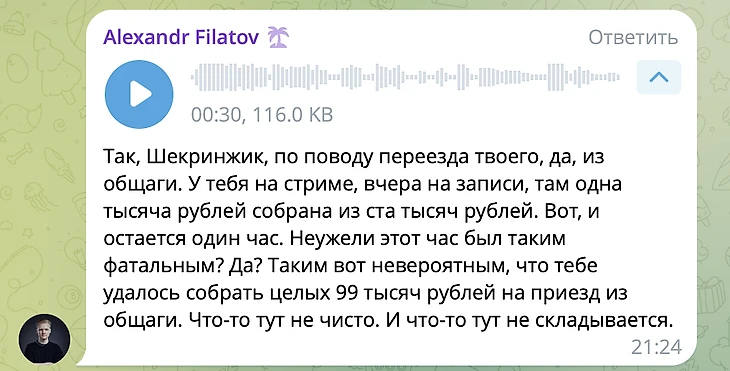 Он появился и в комментариях в телеграм-канале Кринжика. Сенсибилити обвинил игрока в том, что тот замешан в 322: Глеб собирал донаты на переезд и через пару дней после скандала переехал в новое общежитие.