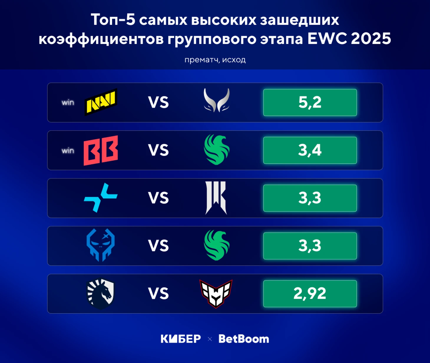 Самым большой выигрыш в плей-офф могла принести фора по картам (-2,5) в финале на Spirit. BetBoom давала коэффициент 4 на это событие. В итоге на EWC почти не было высоких коэффициентов и неожиданностей. Почти все результаты были логичны и предсказуемы, а значит мы получили один из самых справедливых исходов турнира за последнее время.
