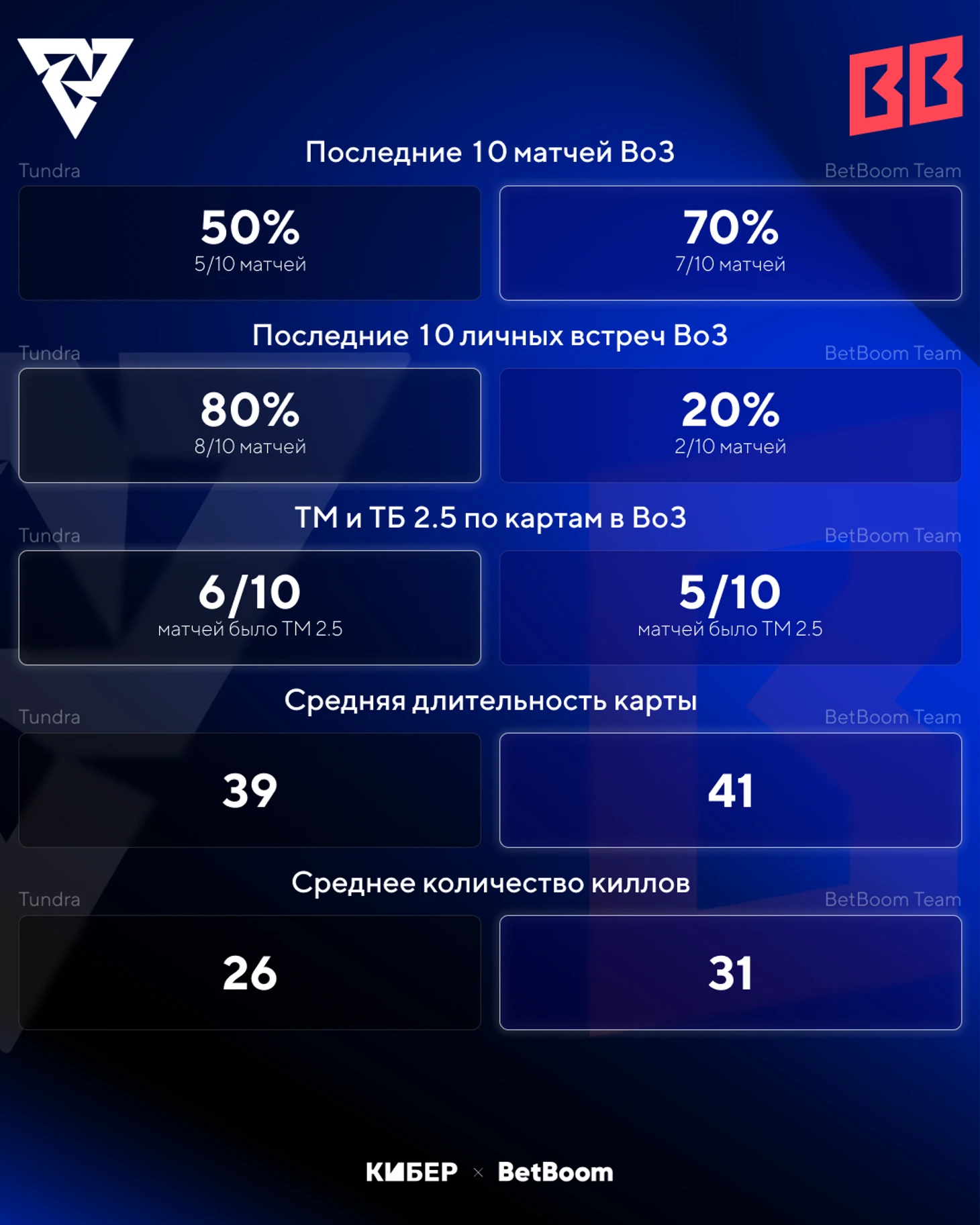 BetBoom Team ошибалась против Execration и Gaimin Gladiators: южноазиатский состав не воспользовался этим, а вот GG забрали карту. Tundra не слабее GG, так что тоже не простит оплошностей, которые наверняка допустит BetBoom Team. Можно поставить на тотал карт больше (2,5) с коэффициентом 1,9.