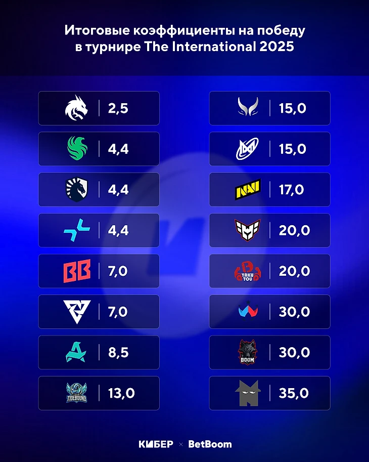 В начале лета BetBoom Team играла как лучшая команда мира, а Gpk уничтожал всех в миду. Правда, на EWC состав вылетел в топ-8 и ничего не показал на последующих турнирах. Сейчас кажется, что команда не в форме, к тому же есть слухи о разногласиях игроков. Считаю, что так или иначе в топ-8 BetBoom Team попадет, а вот дальше могут быть проблемы.