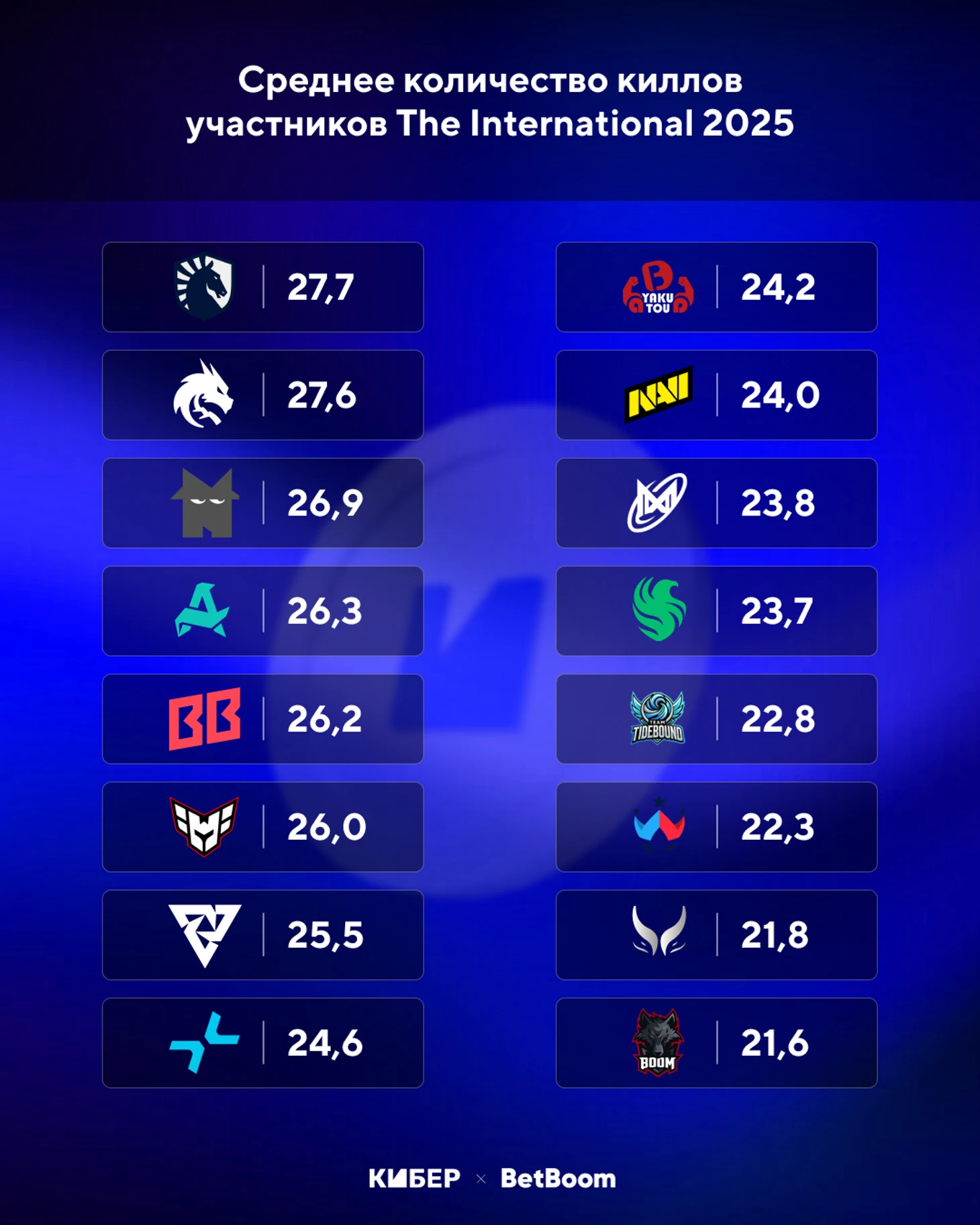 ➢ Spirit и Liquid среди самых убивающих команд.