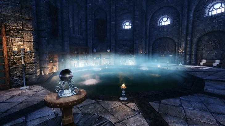 Одна из переделок Коллегии магов Винтерхолда, после которой в нее действительно захочется возвращаться почаще. В сочетании с модом на новых учеников Коллегия оживает, и вы больше не архимаг, потративший три часа на пробежку с топором по двемерским руинам, а настоящая частичка чего-то большего. Покои архимага теперь можно изменять под свои нужды – помимо рабочего кабинета, комнаты для алхимика и библиотеки, можно устроить себе спа-салон как на скриншоте выше. Ну разве не чудесно?