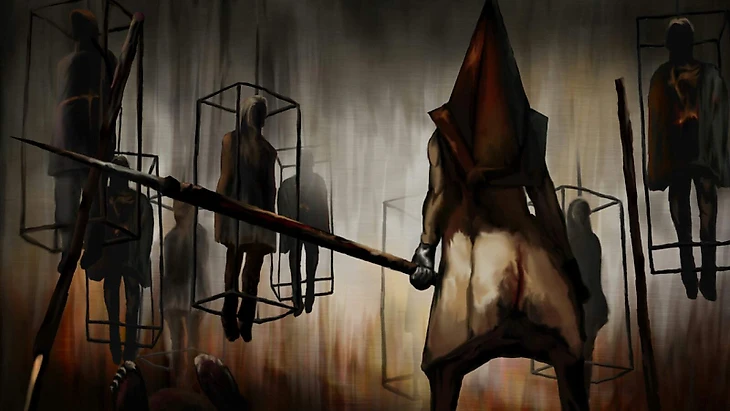 Ито использовал форму треугольника, чтобы обозначить Пирамидоголового явно недобрым персонажем, а также указать на то, что тот испытывает боль. Художник сперва пробовал нарисовать его голову искаженной, но быстро понял, что он просто похож на человека в маске – а этого недостаточно, чтобы напугать игрока.