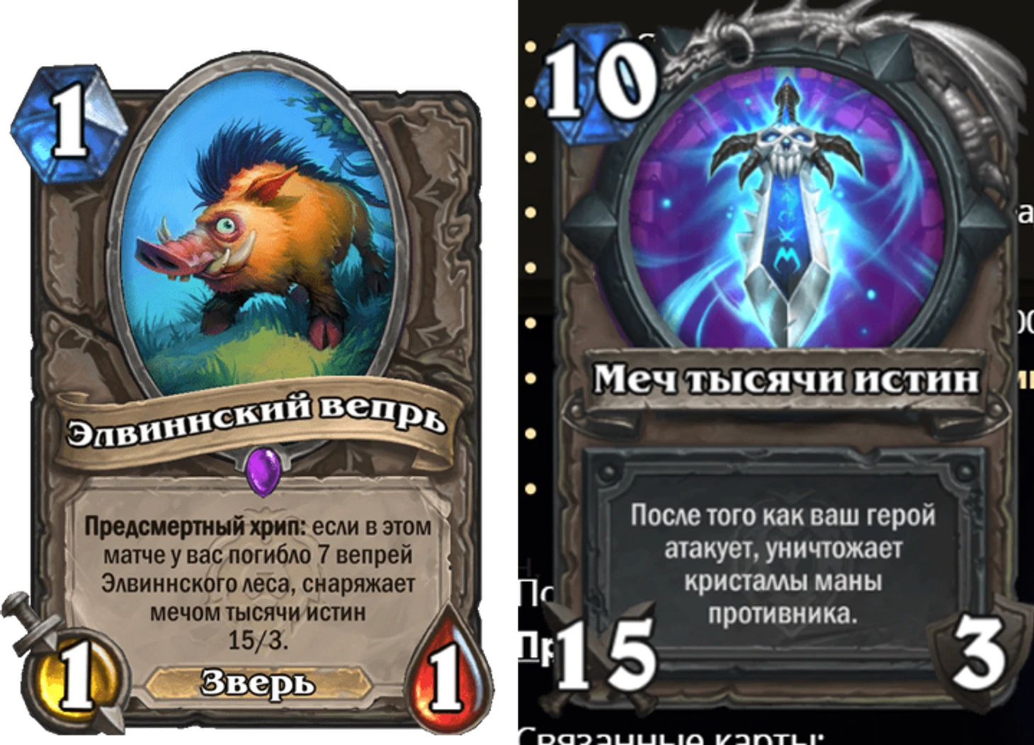 В Hearthstone эту серию увековечили спустя 15 лет после выхода. Нейтральная карта «Элвиннский вепрь» стоит 1 ману, а ее предсмертный хрип навешивает на вашего героя «Меч тысячи истин» с 15 атаки и 3 прочности, выжигающий ману соперника.