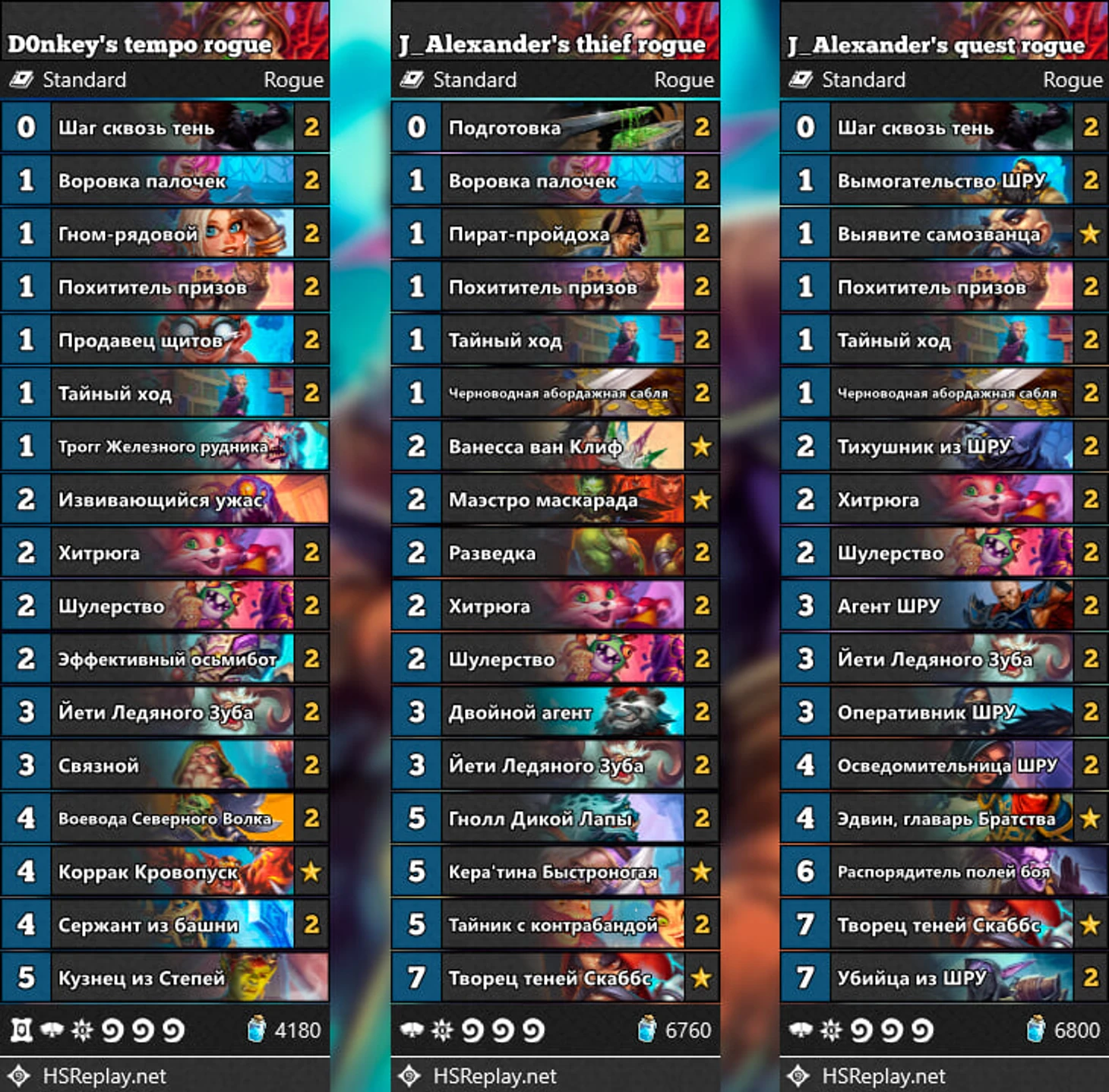 J_Alexander – стример, набивший почти 30 тысяч побед на Разбойнике, поэтому в его руках даже мемные колоды на воровстве выглядят неплохо. А мемные карты – это все, что получили Разбойники в нынешнем дополнении, так что вряд ли этот класс заиграет массово и успешно.