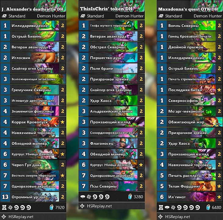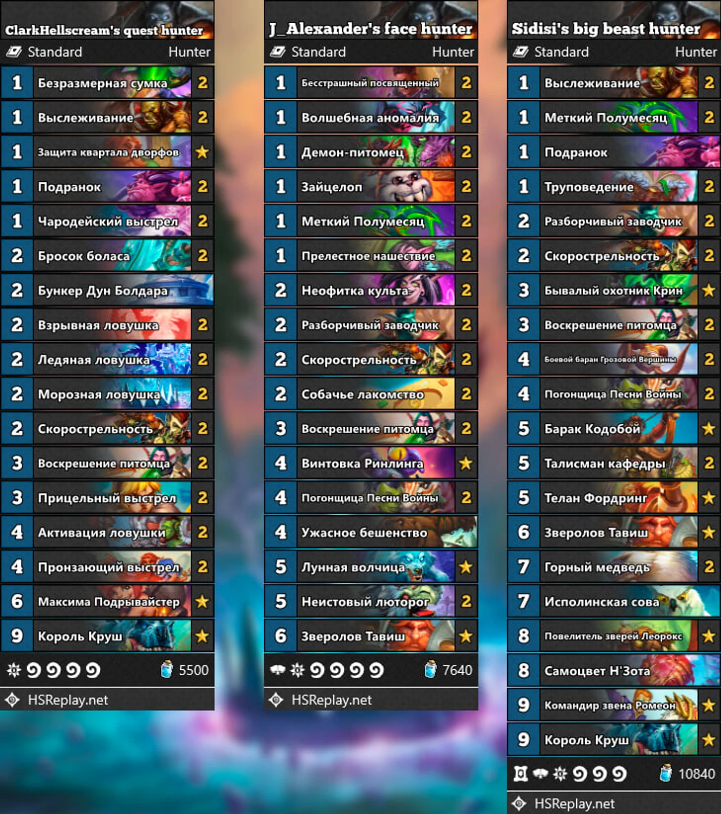 Вот колоды со стримов, которые стоит попробовать в первые дни дополнения. Но если вы ф2п-игрок с небольшой коллекцией и ограниченным запасом пыли, лучше приберегите ее до конца недели – мета уже оформится, и будет ясно, что эффективнее всего. А если вы не понимаете, как играть той или иной колодой, в названии на картинке первым делом написан ник стримера – поищите его YouTube или Twitch, скорее всего, у него есть видео о том, как ей играть.