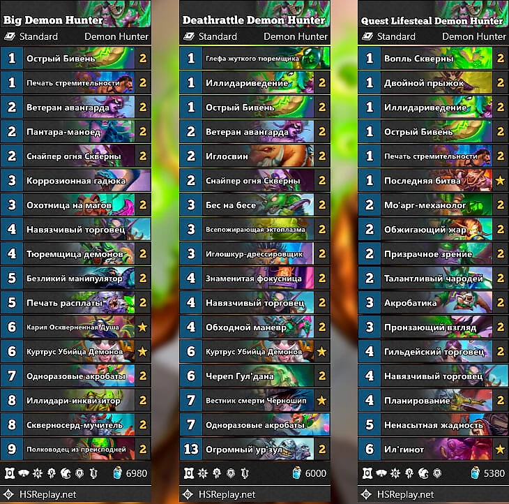 Не самый популярный и стабильный класс Охотника на демонов пока законсервирован: для полноценной поддержки биг-архетипа все еще не хватает сильных карт, а ДХ на хрипах придумали еще в «Степях». Одна радость: «Ненасытная жадность» помогла оживить ОТК-колоду.