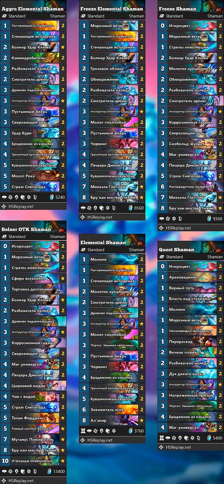 Шаман и так неплохо себя чувствовал, а в новом дополнении так вообще расцвел: появились три новых архетипа. Самый популярный и стабильный из них – обычный мидрейнж фриз-шаман, который может и в начале игры агрессию остановить, и в лейте пережить.
