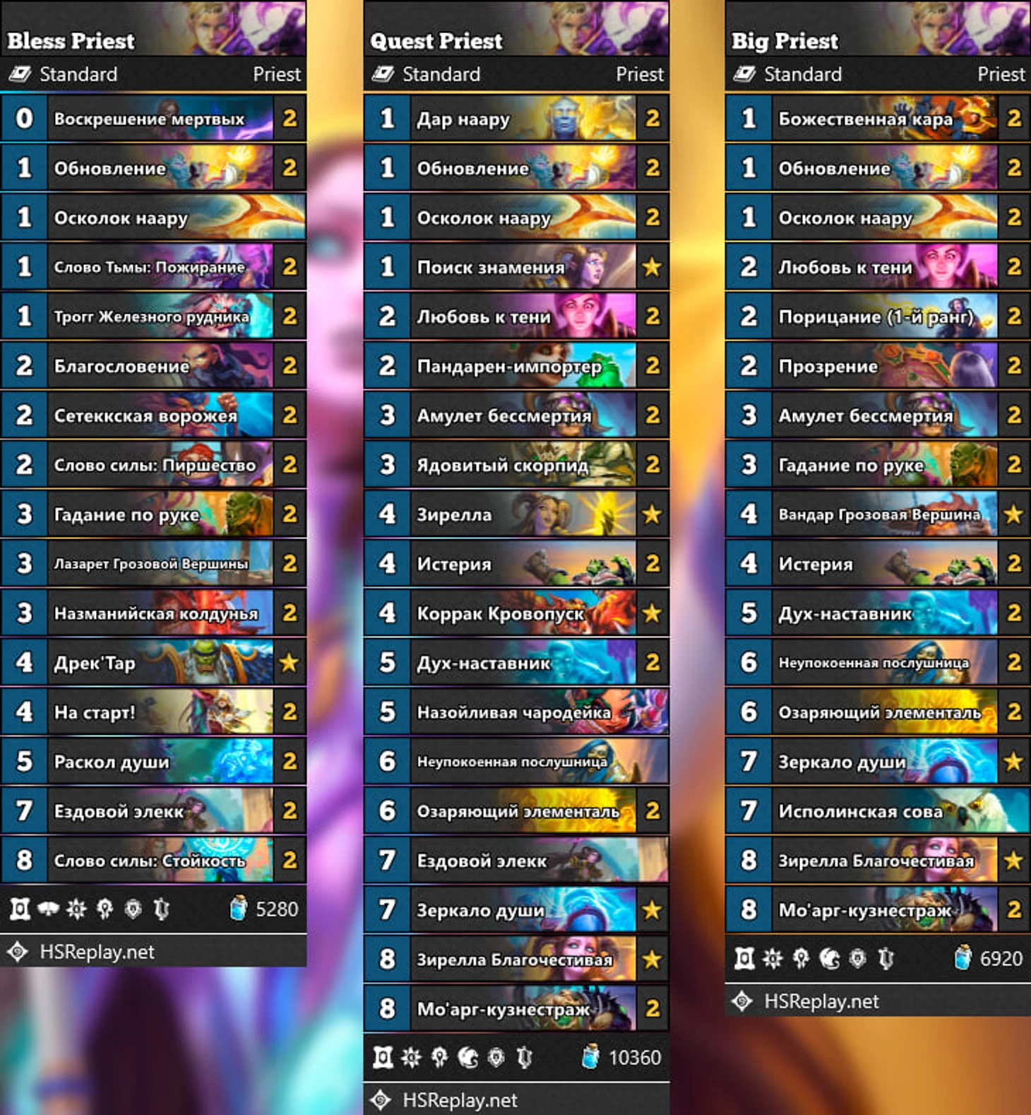 После того, как Маг испарился из ладдера, Жрец вернулся и занял место среди других посредственно показывающих себя классов вроде ДХ. Причем вернулись сразу две колоды, против которых всех бесит играть – биг-жрец и «Ралли». А квест стал получше себя чувствовать с увеличением числа Паладинов – так Жрец хотя бы может дожить до 10 хода, чтобы разыграть карту победы.