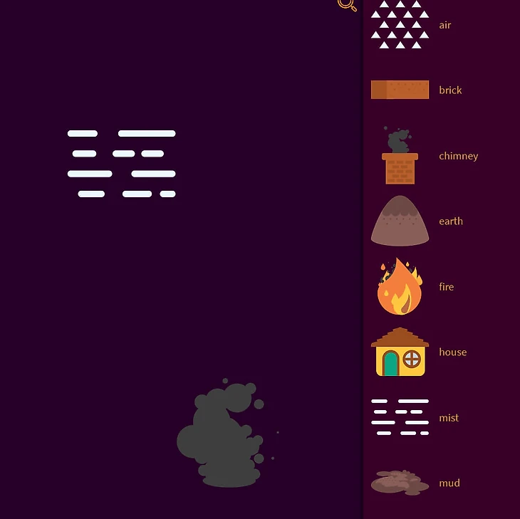Перерождение старой «мобилки» в веб-формате. На старте дают огонь, воду и землю – объединяем ингредиенты и открываем разные предметы и явления. Например, из огня и земли получаем кирпич, два кирпича создают стену, а из стен собираем дом. И далее по нарастающей.