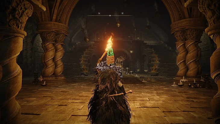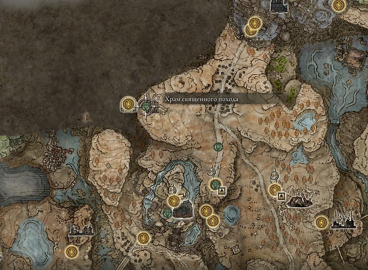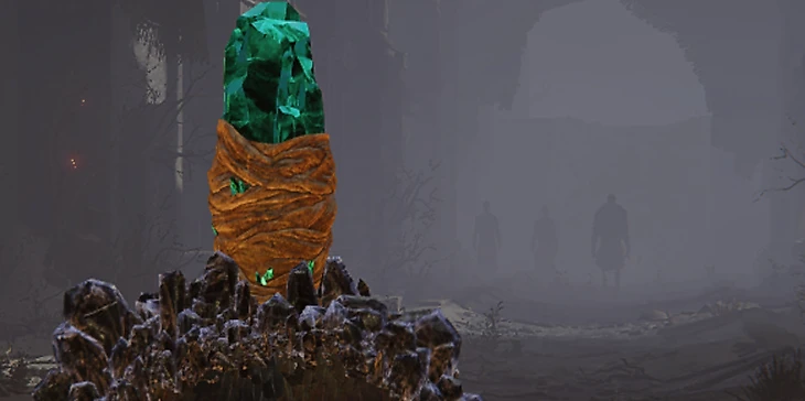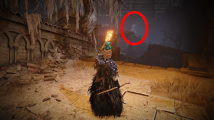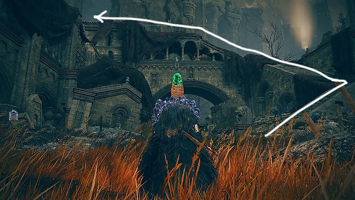 Там начнется сюжетное вторжение огненного рыцаря Квилайна. За первую победу над ним дадут эмблему священного похода – этот талисман увеличивает урон на 15% (10% в PvP) после победы над врагом на 20 секунд. Сзади дерева можно забрать Пепел войны: Скорбный вопль.
