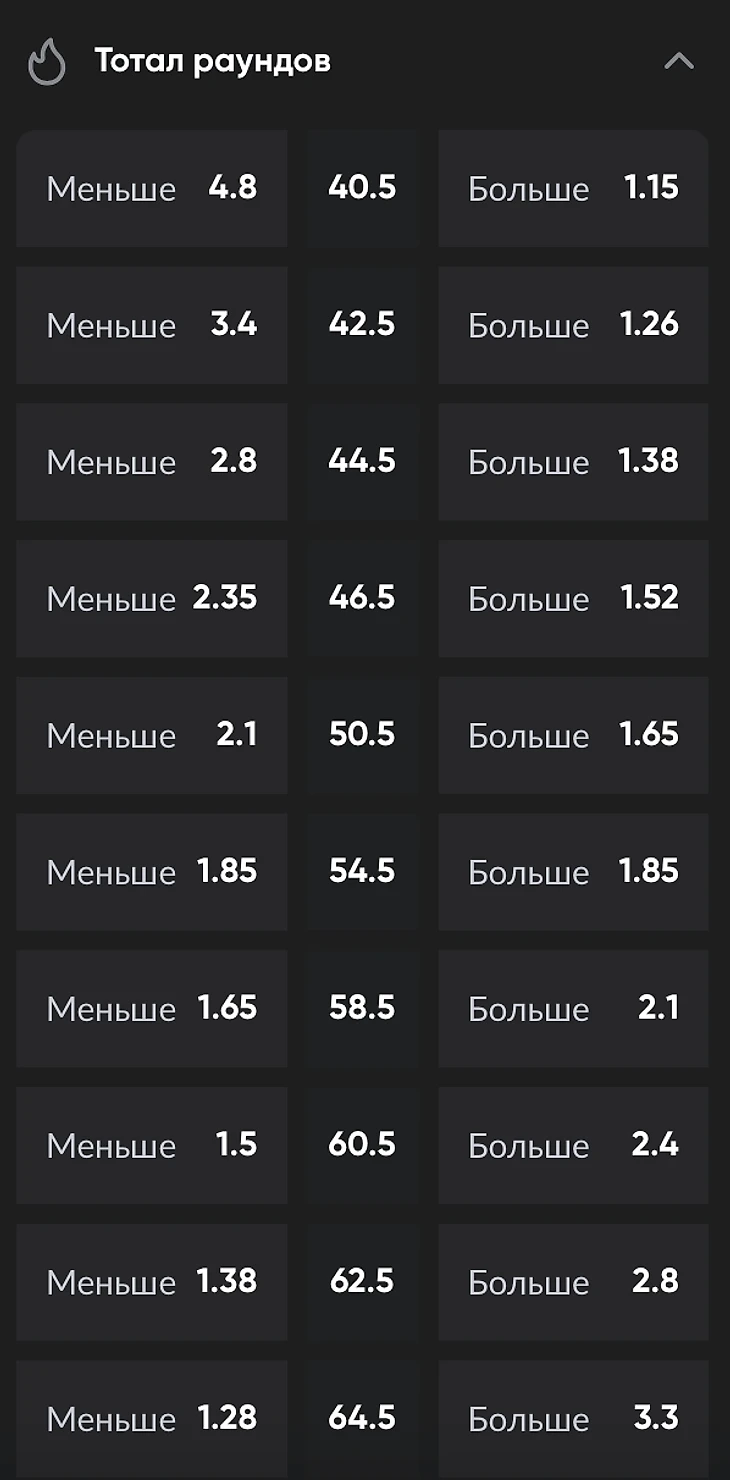 Ключевая особенность такого маркета ставок – не нужно угадывать победителя карты или матча. Достаточно предсказать лишь количество раундов.