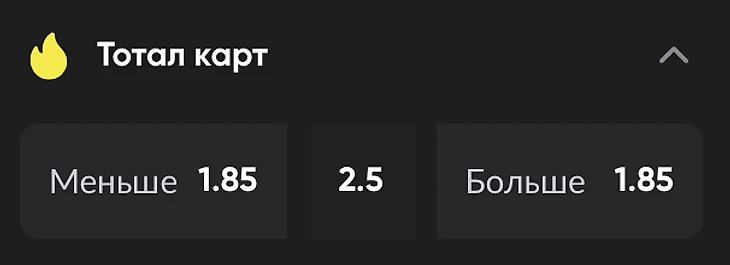 Тотал карт в CS2 – ставка на количество карт в матче. В Bo3-сериях (до двух побед) для ставки доступен только тотал 2,5. В Bo5-матчах (до трех побед) бывают тоталы 3,5 и 4,5.