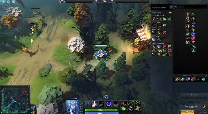 Появление личного курьера у каждого игрока убрало необходимость в боковой лавке. И теперь вместо нее стоит большой пень с забаганным обзором вокруг. А ведь боковой магазин мог иногда дать вам возможность для хайлайта. Например, быстрая покупка Блинка, уход от противников, телепорт на базу. Можно было даже успеть продать Блинк после этого. Веселые были времена!