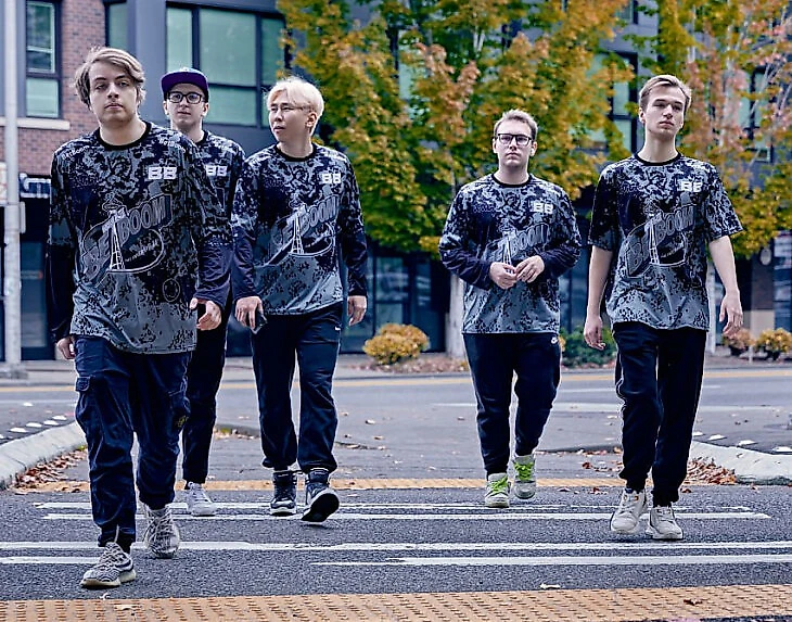 Talon с привычным дизайном формы – узоры на рукавах и по бокам. Раньше это был комикс с фирменным супергероем Talon, теперь – набор мультяшных персонажей из Доты. Форму специально сделали под TI12, с огромным вниманием к деталям и любовью. Очень достойно.