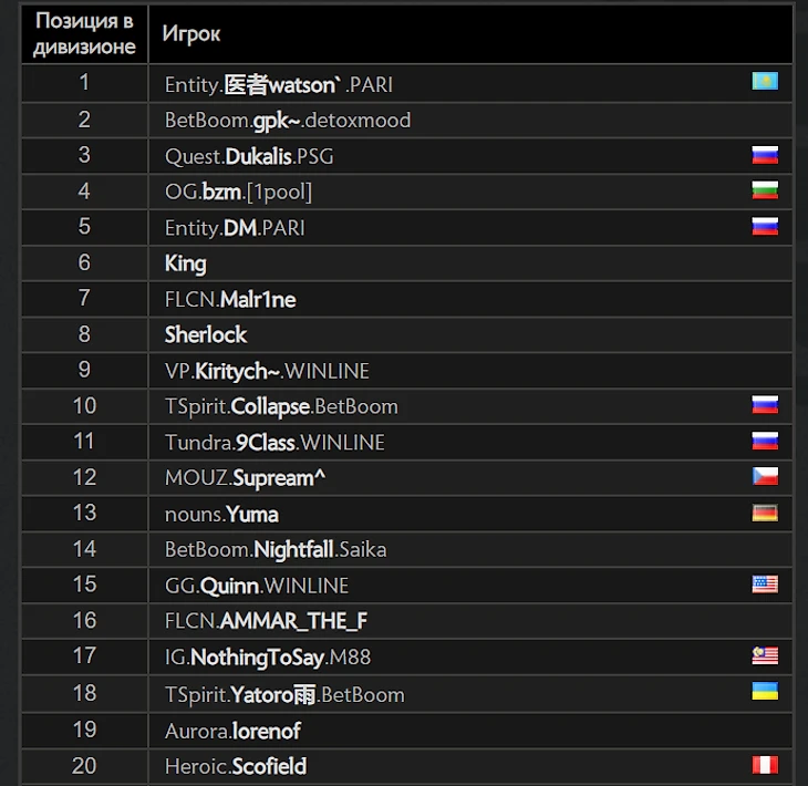 В топ-20 только профессиональные игроки (на всякий случай: King – это Satanic из YeS) и какой-то Sherlock аж на 8 месте. Кто он такой и как тут оказался? Судя по всему, это абузер рейтинга, созданный, чтобы руинить Ватсону.