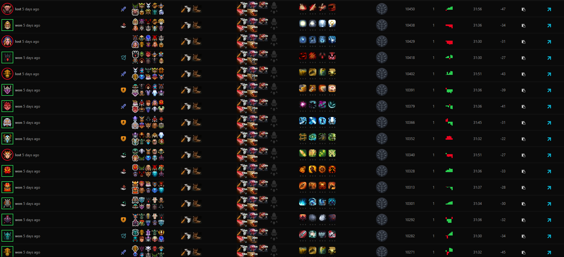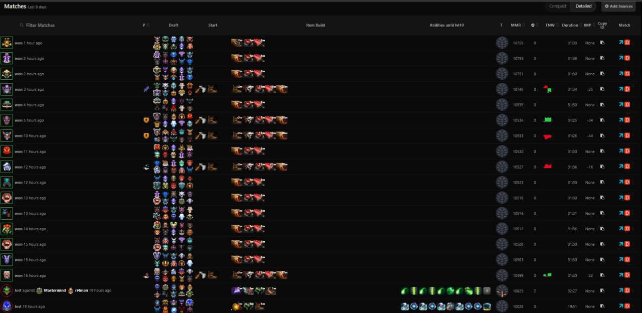 Ни одной прокачанной способности за последние 52 игры, один и тот же закуп и примерно одинаковое время игры. Забавно, да?