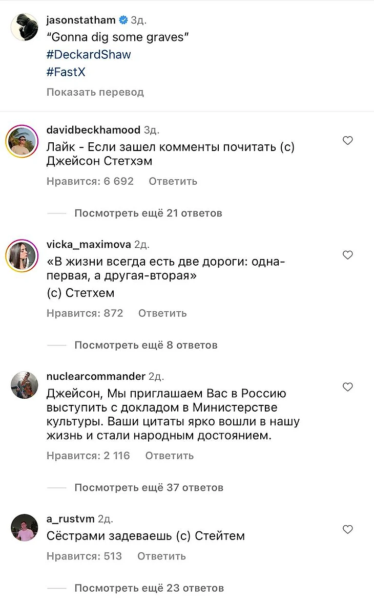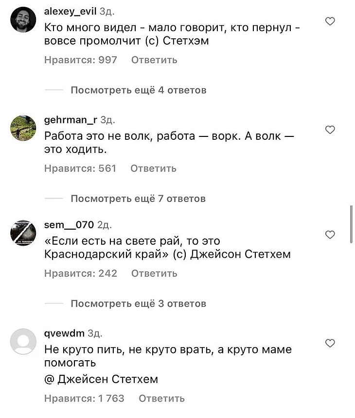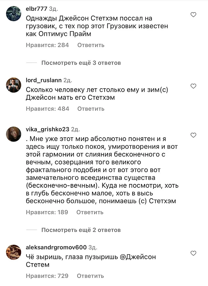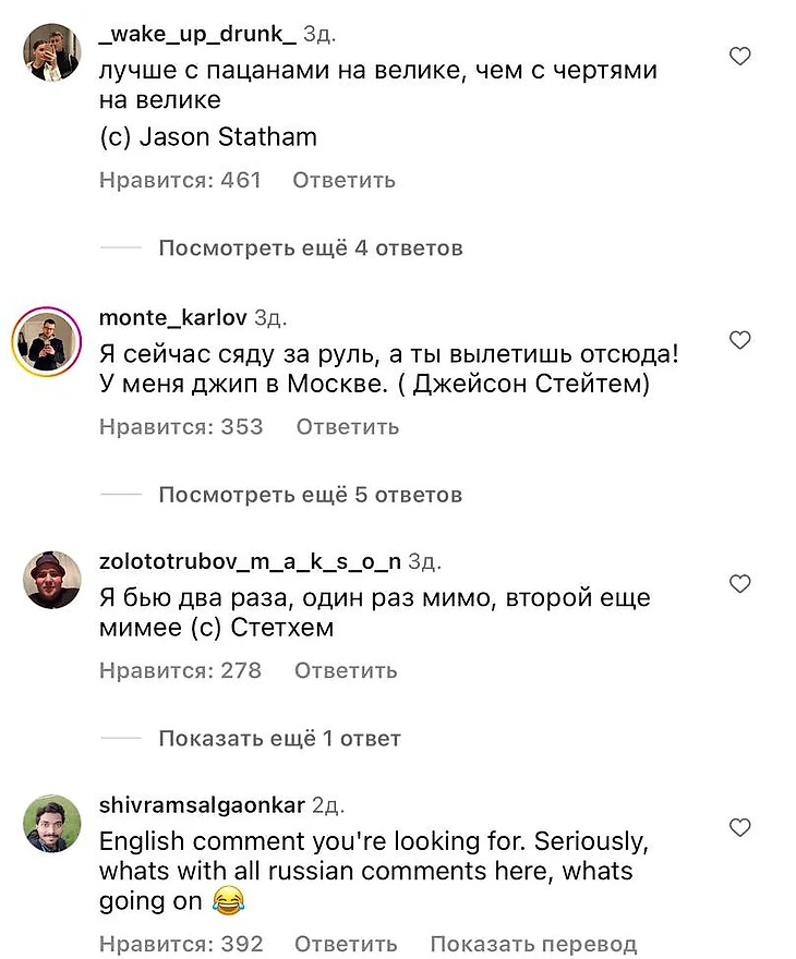 «Че зыришь, глаза пузыришь?» Фанаты Джейсона Стэйтема завалили его инсту панчами на русском!