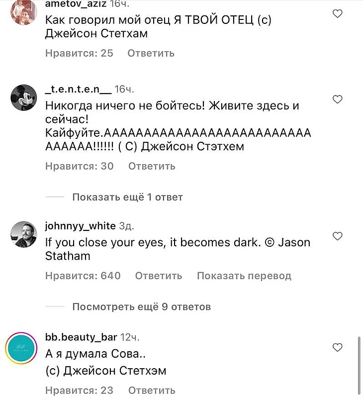 «Мне нужно выучить русский так быстро, как только это возможно». Идеально завершение поста, но далеко не конец всем комментам. Вот ссылка на инст актера – читайте великие мысли и пишите свои!