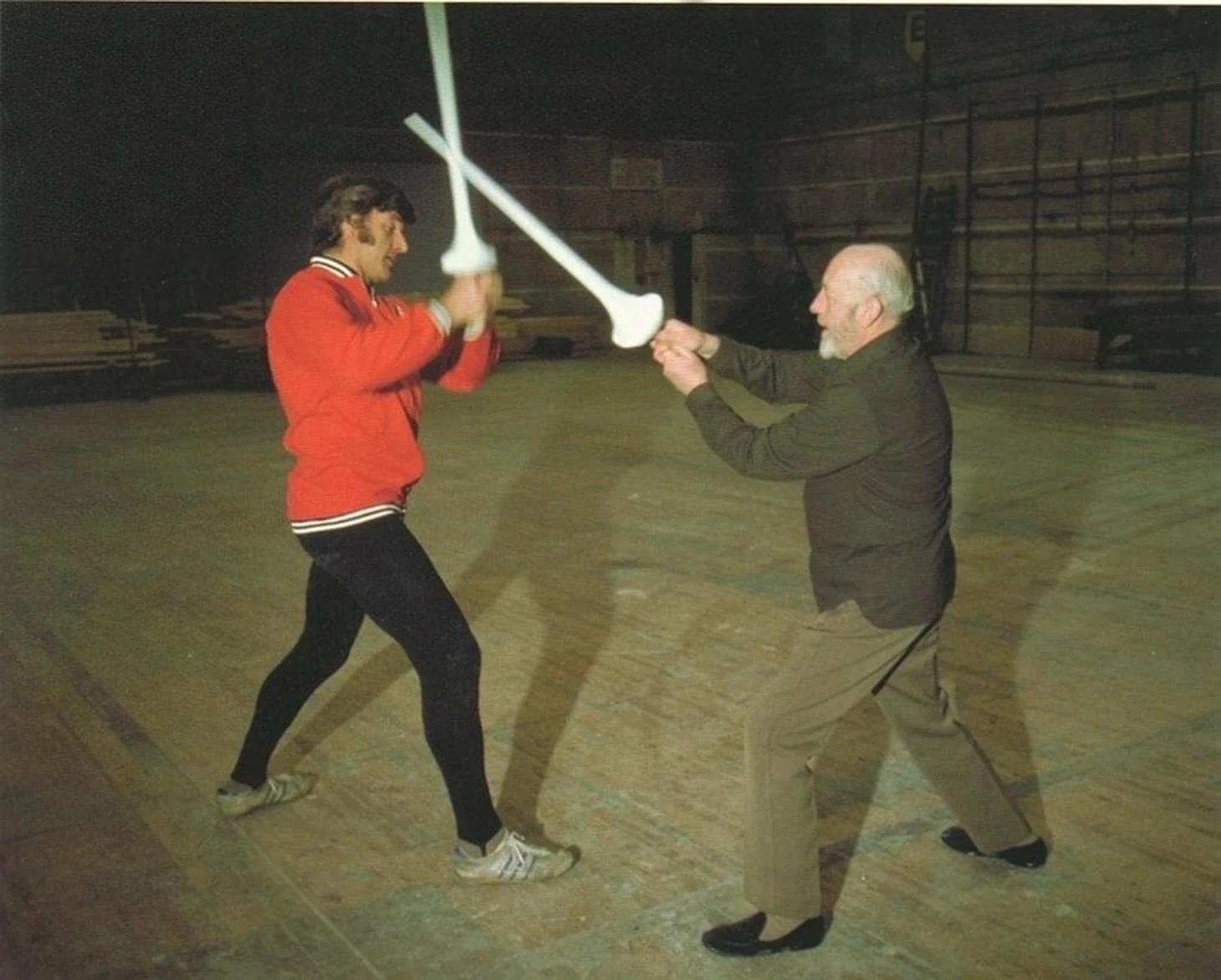 Дело в том, что Алеку Гиннессу было 62 года, когда он снимался в «Звездных войнах» в роли Оби-Вана. Сэр Алек был искусным фехтовальщиком, но его стиль был похож на фехтование в стиле пиратских фильмов Эррола Флинна или старых фильмов про Робин Гуда.