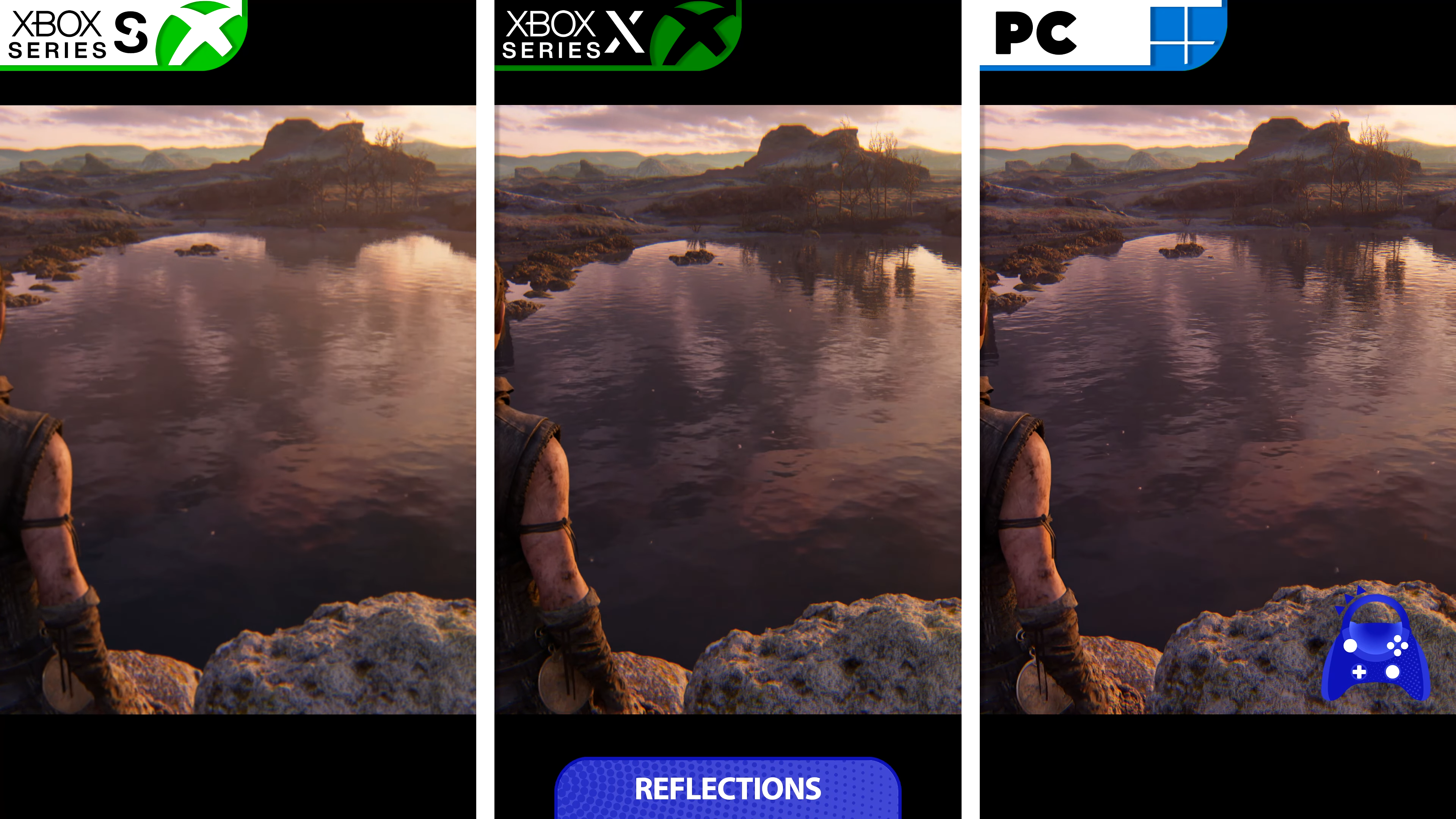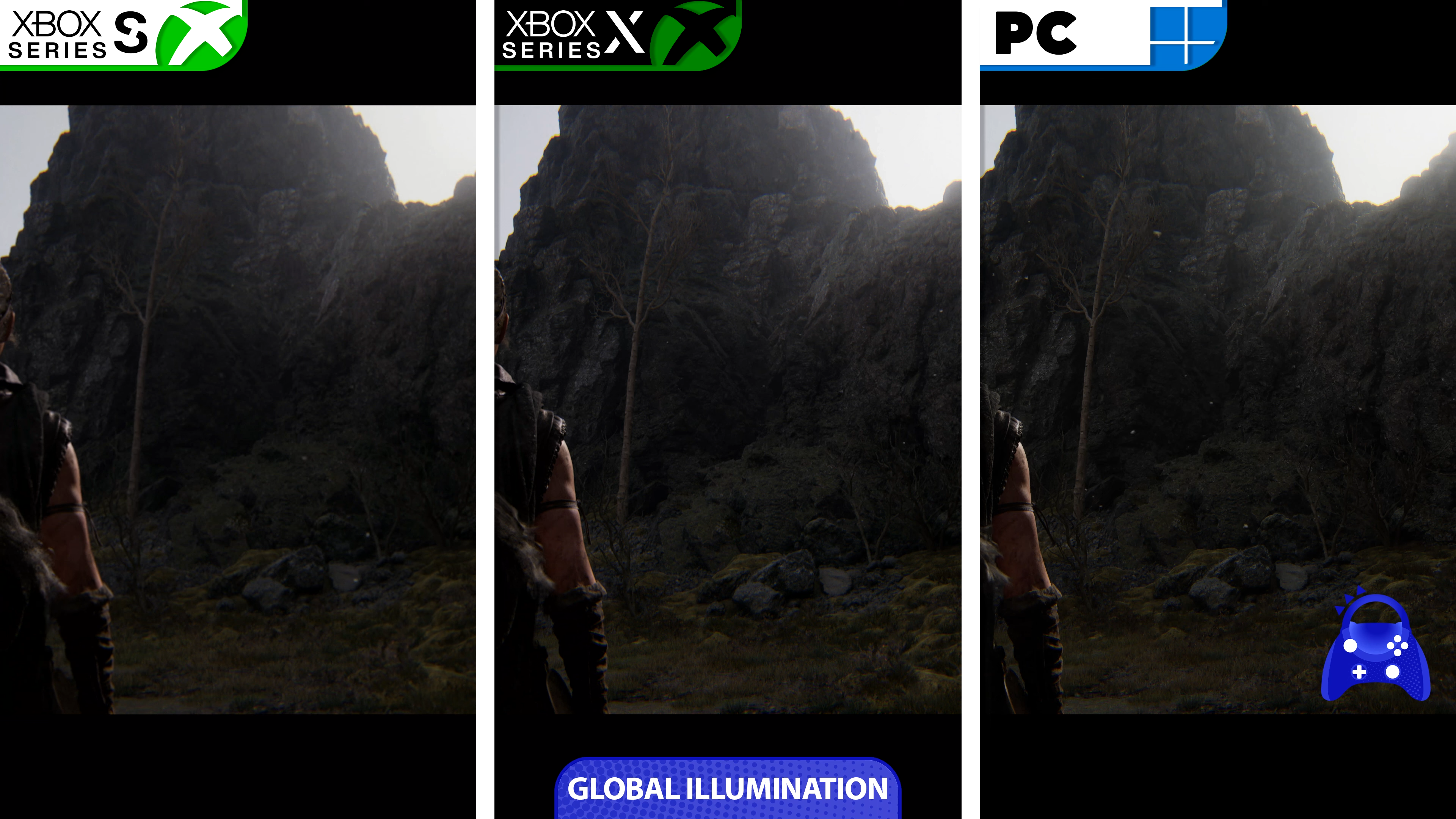 Еще несколько кадров со сравнением технических аспектов игры на Xbox Series X, Series S и ПК (картинки кликабельны).