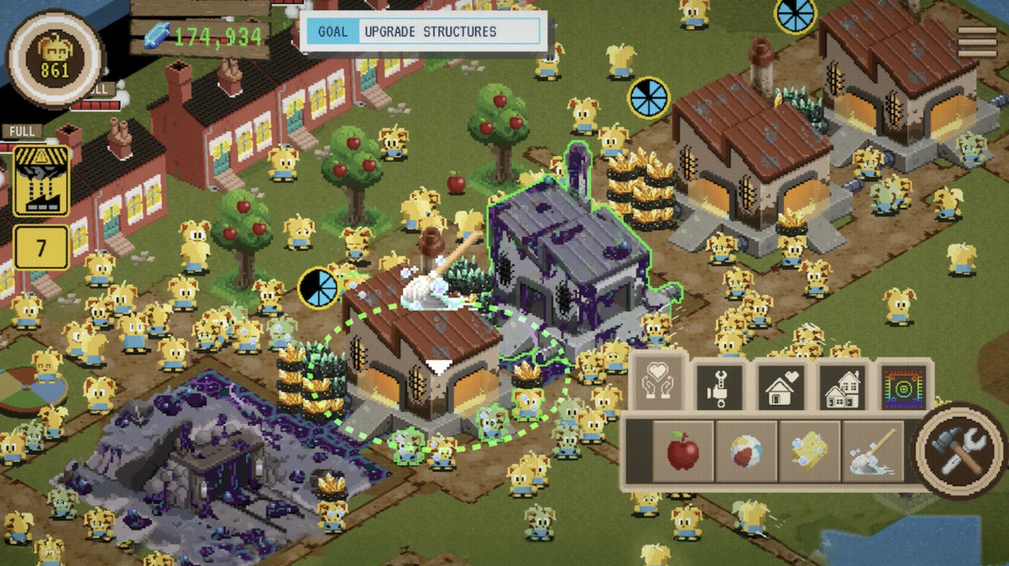 Что по геймплею? Игрок управляет жизнью виртуальных питомцев. Если хорошо он них заботиться, существа будут размножаться. При этом удовлетворить их потребности будет сложнее. Также они собирают ресурсы, разрабатывают технологии, исследуют новые области, открывают инструменты и новые типы построек, чтобы прогрессировать быстрее.