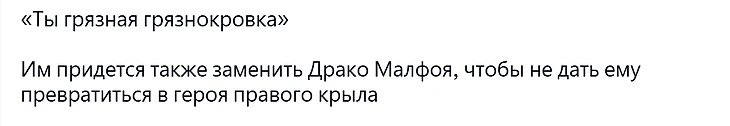 С нетерпением жду как Драко Малфой арийской внешности будет называть ее грязнокровкой и намекать Гарри, что рукопожатным следует осторожнее выбирать круг общения, дабы самому не превратиться в нерукопожатного 😊
