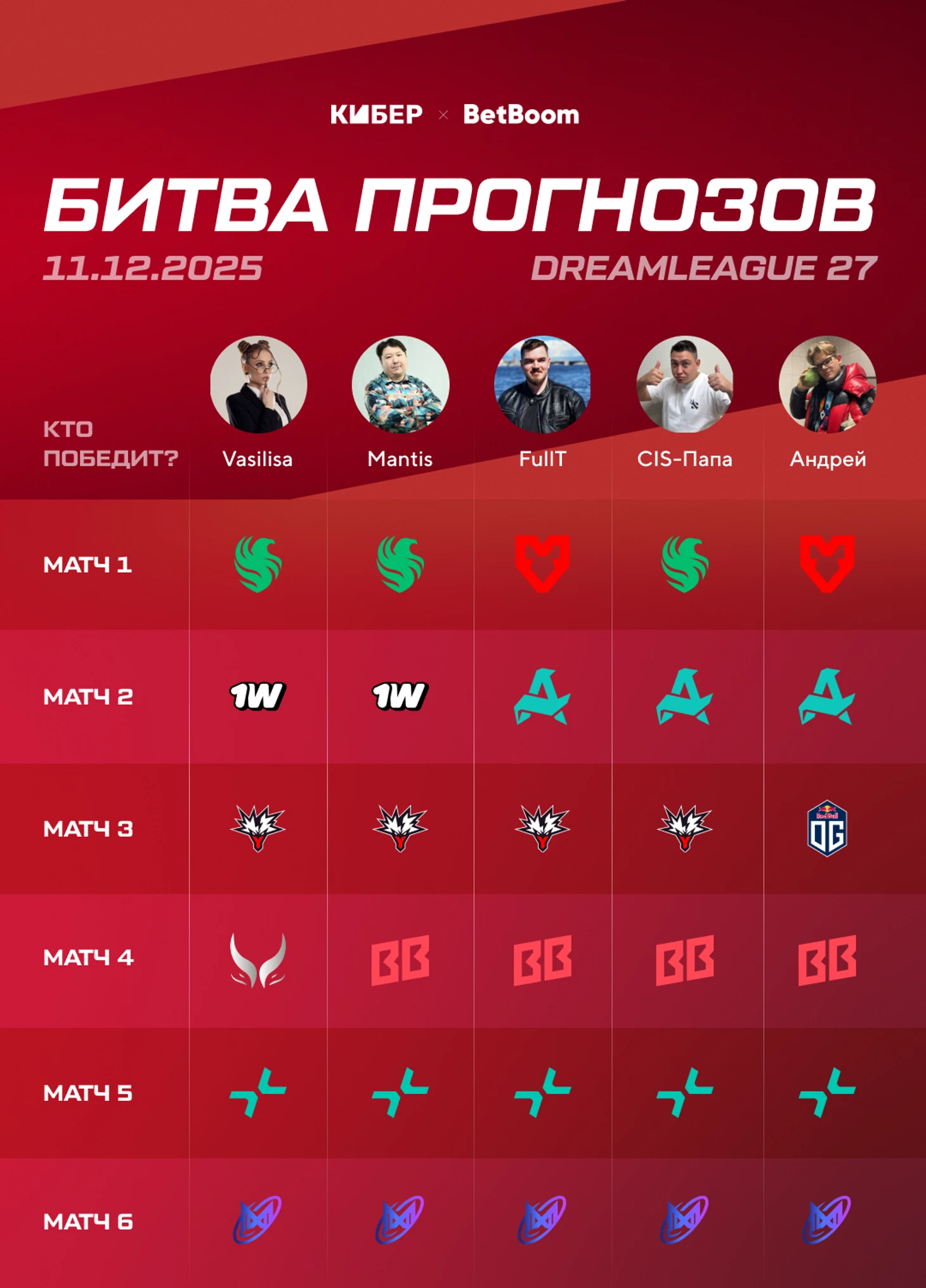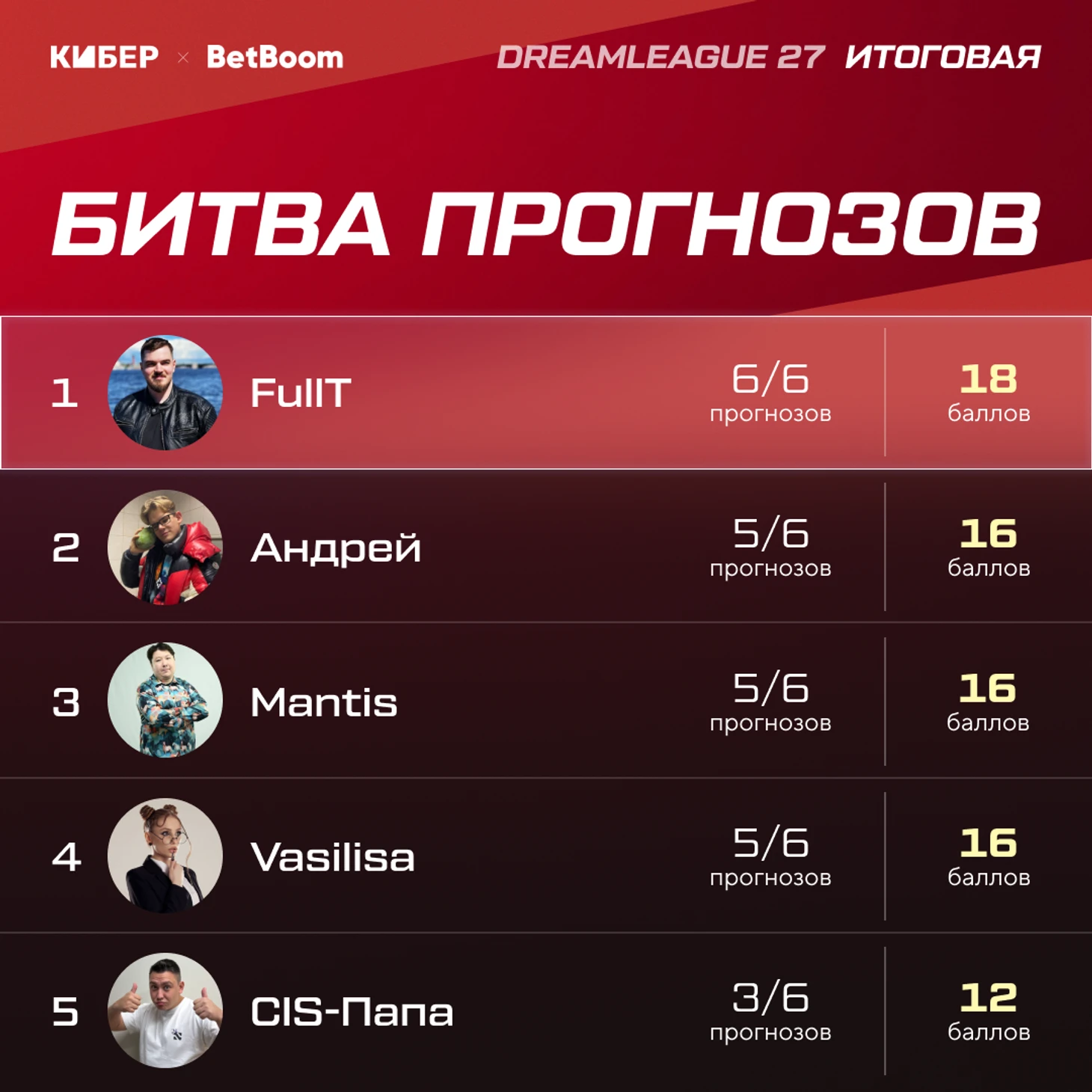 За верные прогнозы участники получают очки, за ошибочные – утешительный балл. Победит тот, кто наберет больше всех очков по итогам DreamLeague S27.