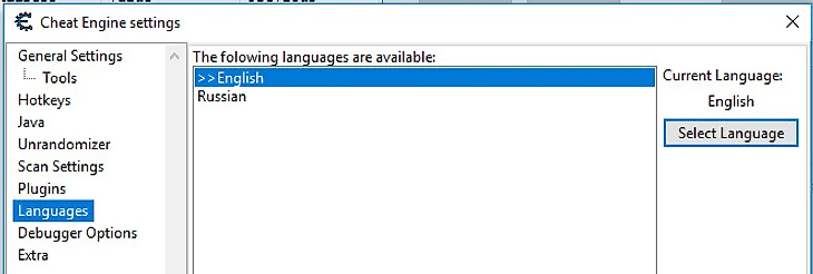 При запуске Cheat Engine появится диалоговое окно с двумя опциями запуска программы: на русском и английском