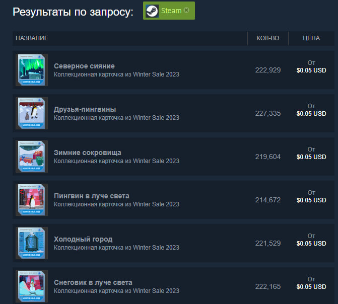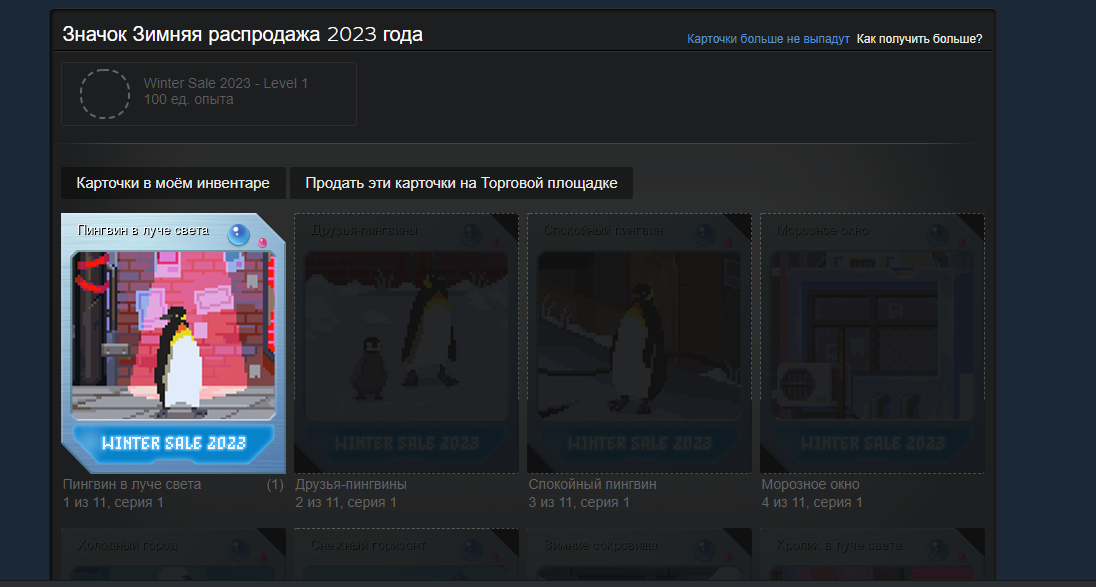Еще один способ получать карточки зимней распродажи Стим 2023 бесплатно