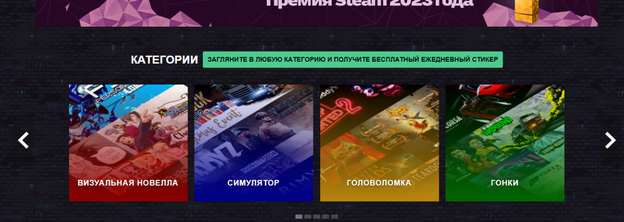 Кроме голосования в премии, вы также можете лутать по одной бесплатной карточке зимней распродажи 2023. Для этого найдите на главной странице Steam такой баннер: