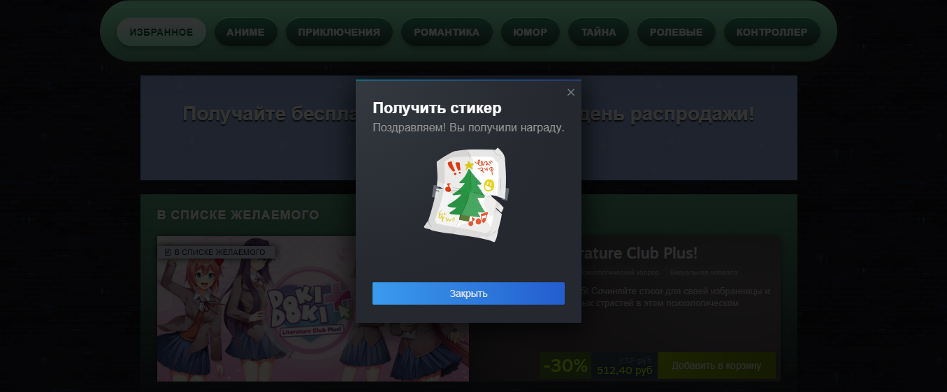 Когда нажмете, вы получите стикер и карточку зимней распродажи Steam 2023: