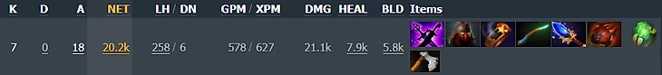 Даже с личной пятеркой не все игры проходят так гладко. Иногда сила героя нивелируется разницей в уровне команд, но винрейт получалось держать в районе 50% при общем 41,18%.