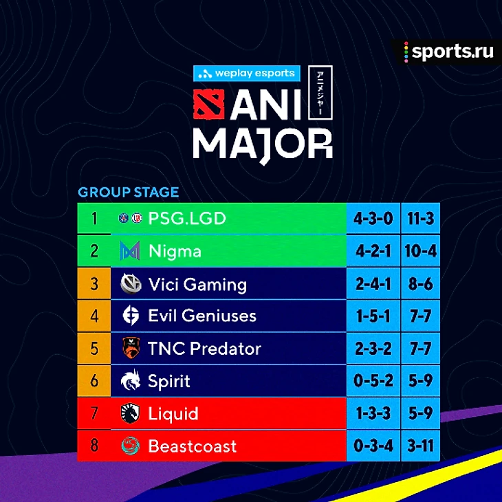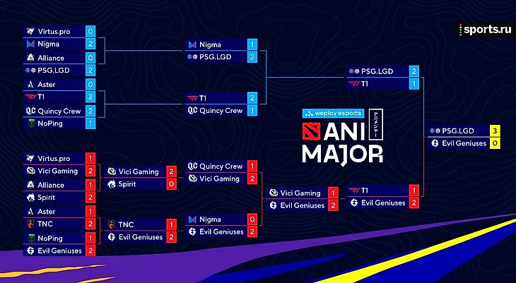 16:00 PSG.LGD 2:0 Evil Geniuses16:00 Team Nigma 2:0 Vici Gaming