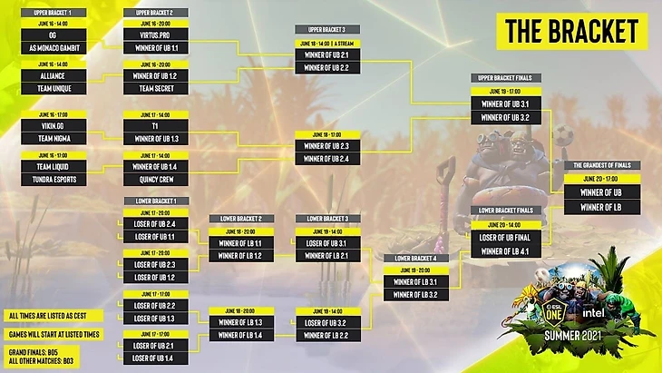 Основная часть ESL One Summer 2021 пройдет с 16 по 20 июня в онлайне. 9 приглашенных напрямую и 3 команды из квалификации разыграют призовой фонд в размере 400 тысяч долларов. Восемь команд стартуют с первого раунда верхней сетки: OG, Monaco Gambit, Alliance, Unique, Nigma, Vikin.gg, Liquid, Tundra.