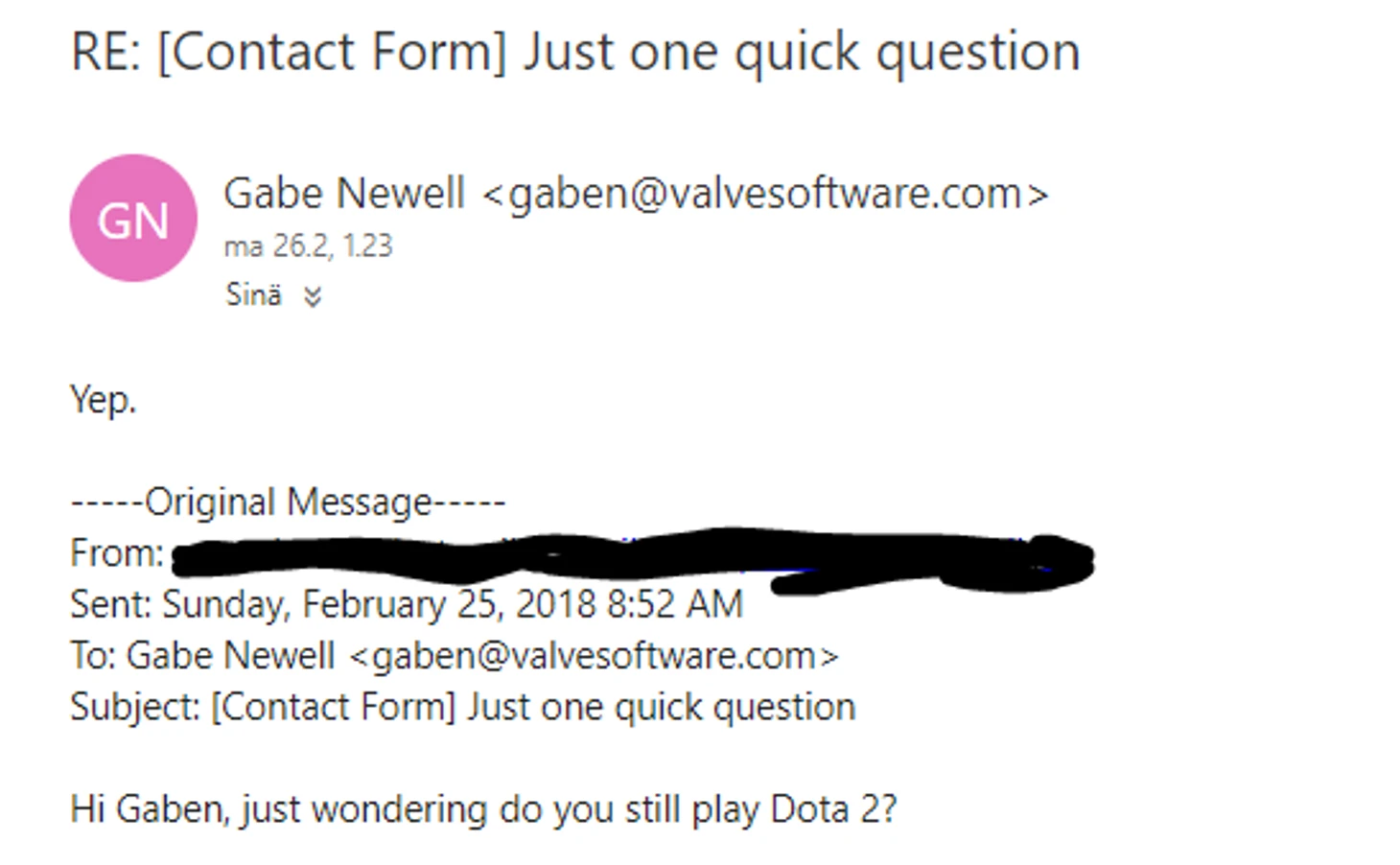 «Привет, Габен. Просто интересно, ты все еще играешь в Доту 2?»
