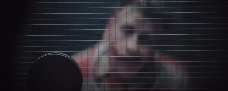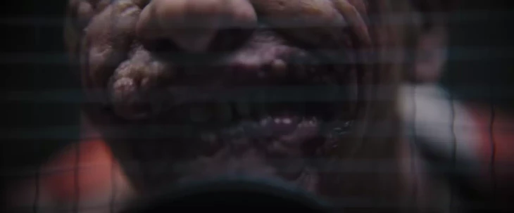 На протяжении большей части сцены зритель видит лицо героя размыто – либо через стекло, либо в отражении. И только в конце появляется четкий план, на котором видно знаменитый шрам на щеке.