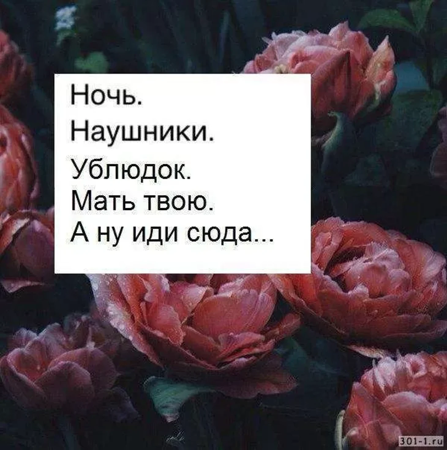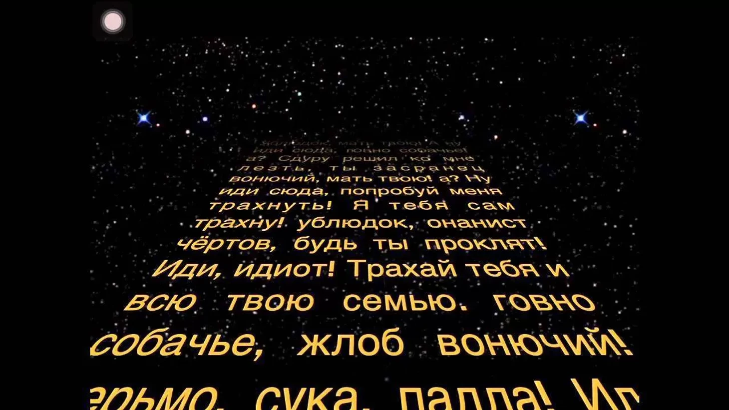 «Ублюдок, мать твою, а ну, иди сюда, говно собачье, а? Что, сдуру решил ко мне лезть? Ты, засранец вонючий, мать твою, а? Ну, иди сюда, попробуй меня трахнуть – я тебя сам трахну, ублюдок, онанист чертов, будь ты проклят! Иди, идиот, трахать тебя и всю твою семью! Говно собачье, жлоб вонючий, дерьмо, сука, падла! Иди сюда, мерзавец, негодяй, гад! Иди сюда, ты, говно, жопа!»
