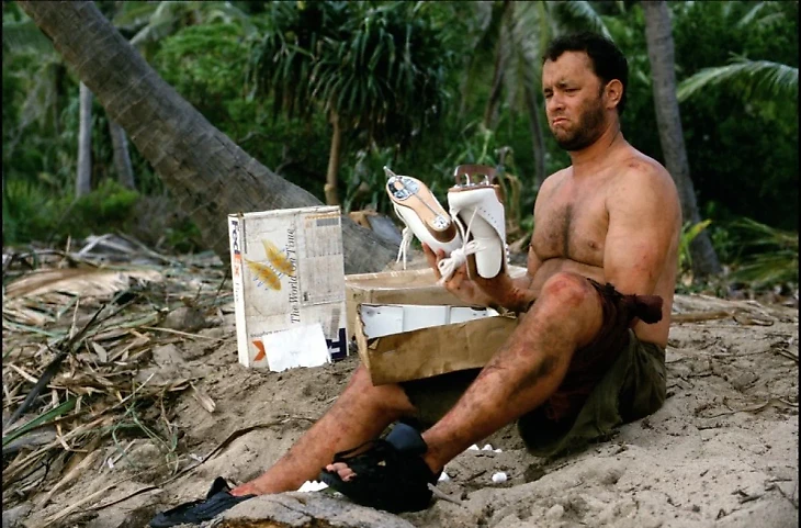 В приключенческой драме Роберта Земекиса Том Хэнкс играет роль Чака Ноланда, сотрудника FedEx, который оказывается на необитаемом острове после авиакатастрофы.