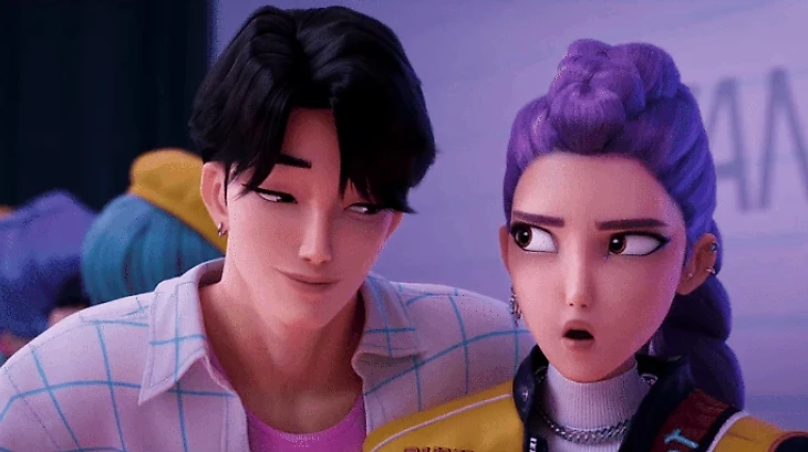 Первое столкновение Руми и Джину в мультфильме напоминает культовые сцены из корейских сериалов, где сразу очевидно, что между героями возникает сильное притяжение. Эта встреча насыщена тонкой игрой эмоций, намеками и подтекстами, которые интригуют зрителя и прокладывают путь к последующему сближению. Именно в этот момент начинает формироваться «главная парочка» – связь, построенная на противостоянии, загадках и скрытых чувствах, что становится центральным эмоциональным стержнем всего повествования.