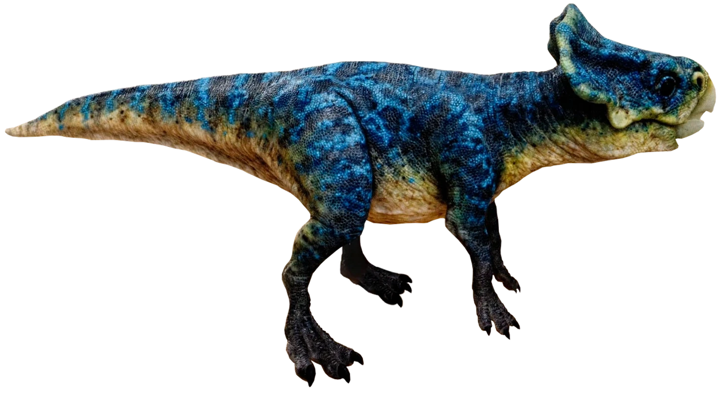 Пахицефалозавр – травоядный динозавр позднего мела, достигавший длины 4,5 метра. Его отличительной чертой был куполообразный череп толщиной до 25 см. Ученые считают, что он использовался для столкновений между самцами или как защита от хищников. Передвигался пахицефалозавр на двух ногах, питался листьями и плодами. Молодые особи имели мягкий череп, который со временем твердел. Также есть версия, что купол служил визуальным сигналом для общения и привлечения партнеров. Пахицефалозавры появляются в серии мультфильмов «Camp Cretaceous» и некоторых дополнительных материалах, но в кино они не показаны .