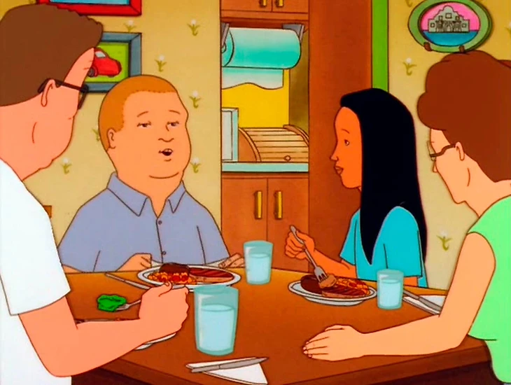 Когда Коттон появляется в доме сына, Хэнку приходится вести войну на два фронта: он пытается оградить впечатлительного Бобби от вредного влияния деда, и при этом сам едва сдерживается, чтобы не повторить отцовские ошибки. Бобби, всегда отличавшийся мягкостью, неожиданно начинает перенимать радикальные взгляды Коттона, демонстрируя, насколько хрупким может быть детское мировоззрение. В этом эпизоде сериал достигает необычного баланса – через фирменный комедийный стиль он показывает серьезную драму семейной травмы, где Хэнк, сам травмированный сын, теперь должен стать защитником для своего ребенка. При этом создатели показывают Коттона не просто как «плохого парня», а как жертву его собственных неразрешенных психологических ран.