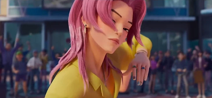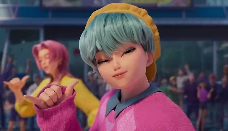 Эбби – воплощение харизмы на сцене: он блестяще исполняет хореографию и вокал, особенно в сольных частях песен – «Soda Pop» и «Your Idol». Но под маской идола скрывается демон с мощными способностями – похищением душ, телепортацией, левитацией и почти бессмертием. В финале фильма Эбби жертвует собой ради Джину, пытаясь атаковать героинь, но погибает от рук Миры, что добавляет трагизма его образу.