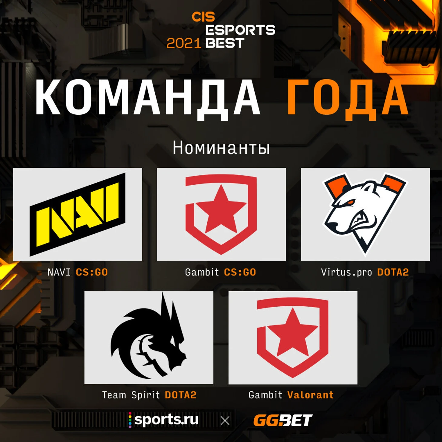 Шорт-лист номинации «Команда года» на CIS Esports Best. Тут чемпионы по Dota 2, CS:GO и Valorant